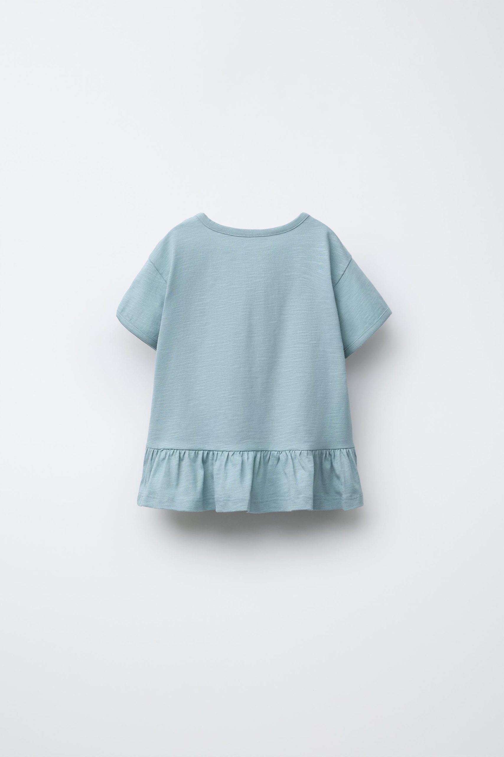 تیشرت با پشت چیندار برند زارا رنگ آبی | Zara T-SHIRT WITH RUFFLE BACK
