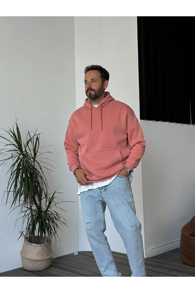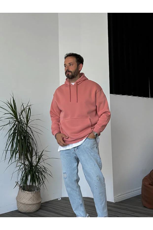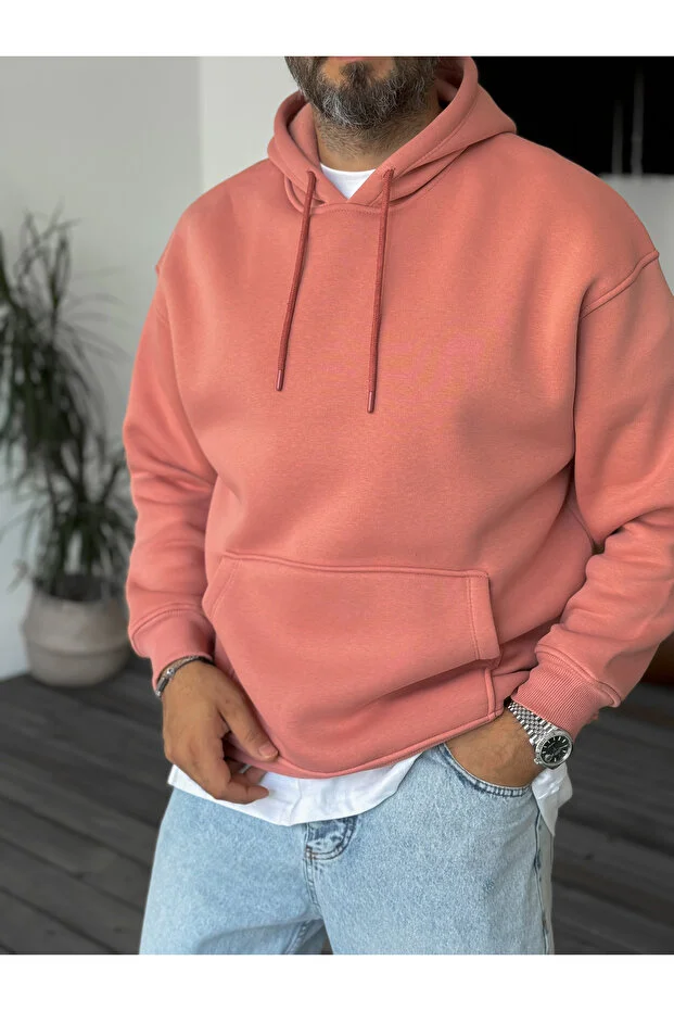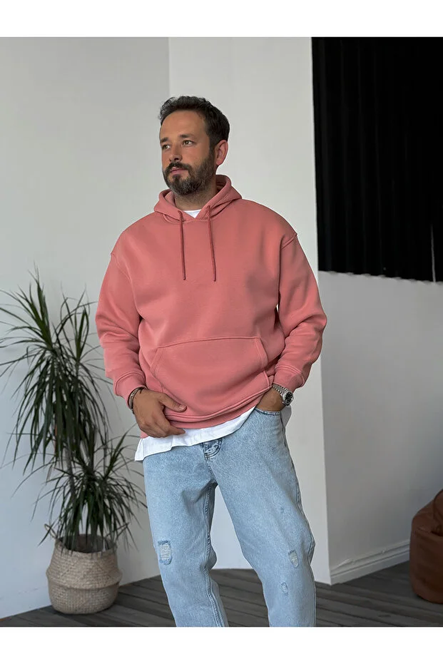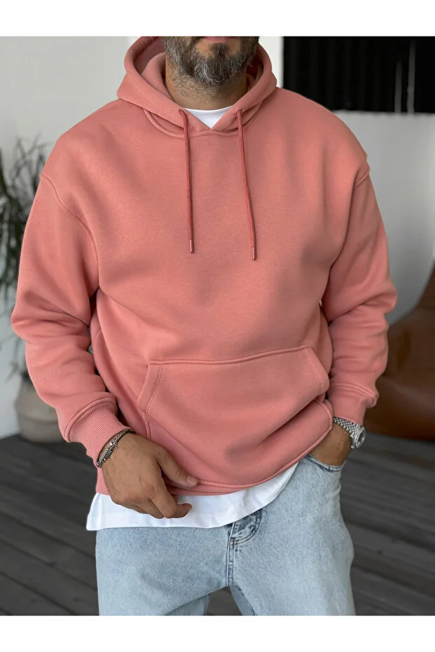 سویشرت کلاهدار مردانه | Pudra Basic Kapüşonlu Sweatshirt