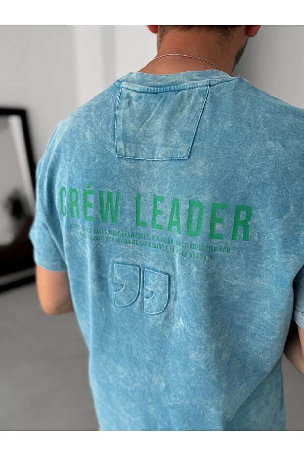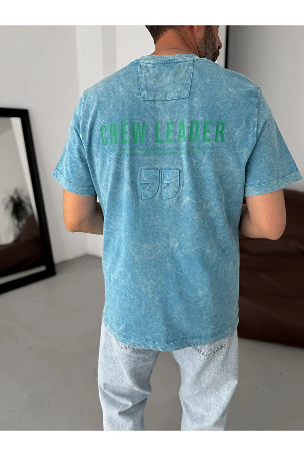 تیشرت آبی با طرح چاپی و طراحی اور سایز | Mavi Yıkamalı Crew Baskılı Oversize T-Shirt