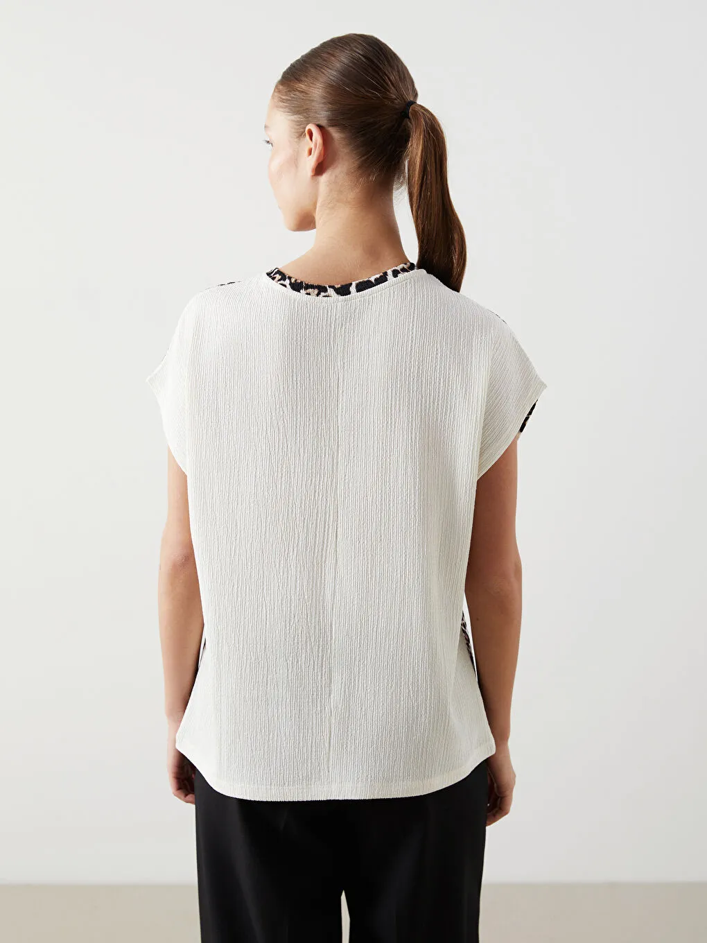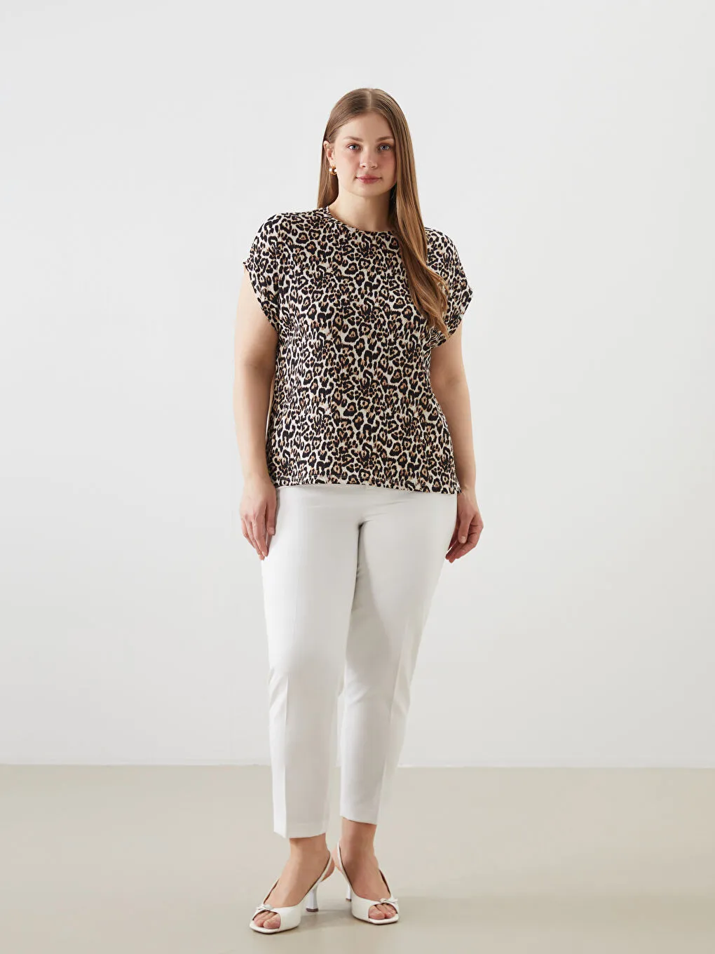 تیشرت زنانه پلنگی طرحدار یقه گرد کلاسیک السیوایکیکی | LCWAIKIKI Classic Kahverengi Bisiklet Yaka Desenli Kadın Tişört