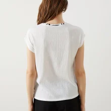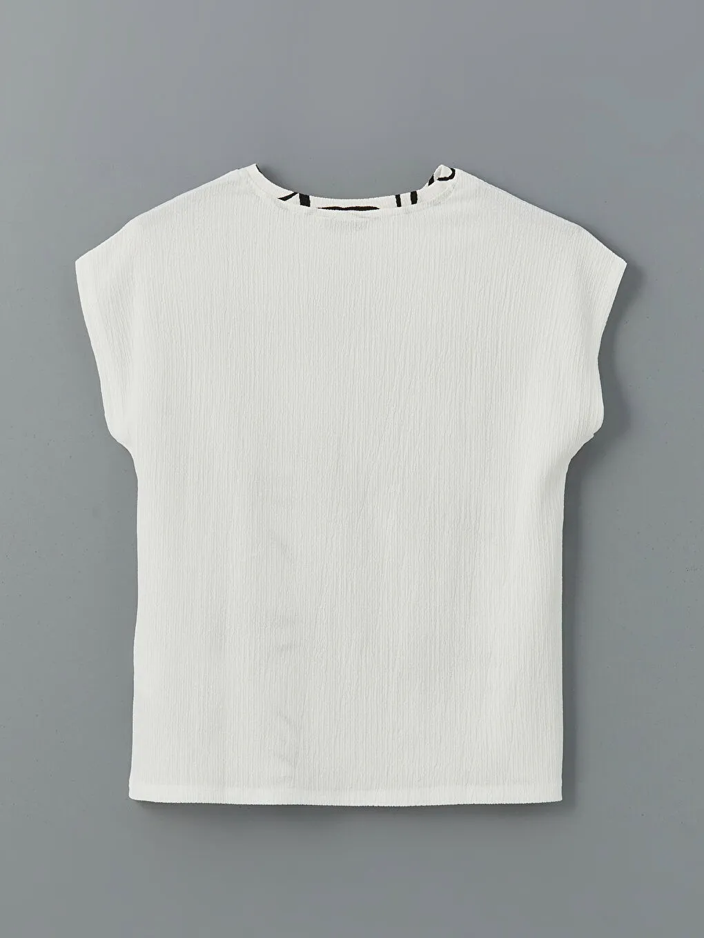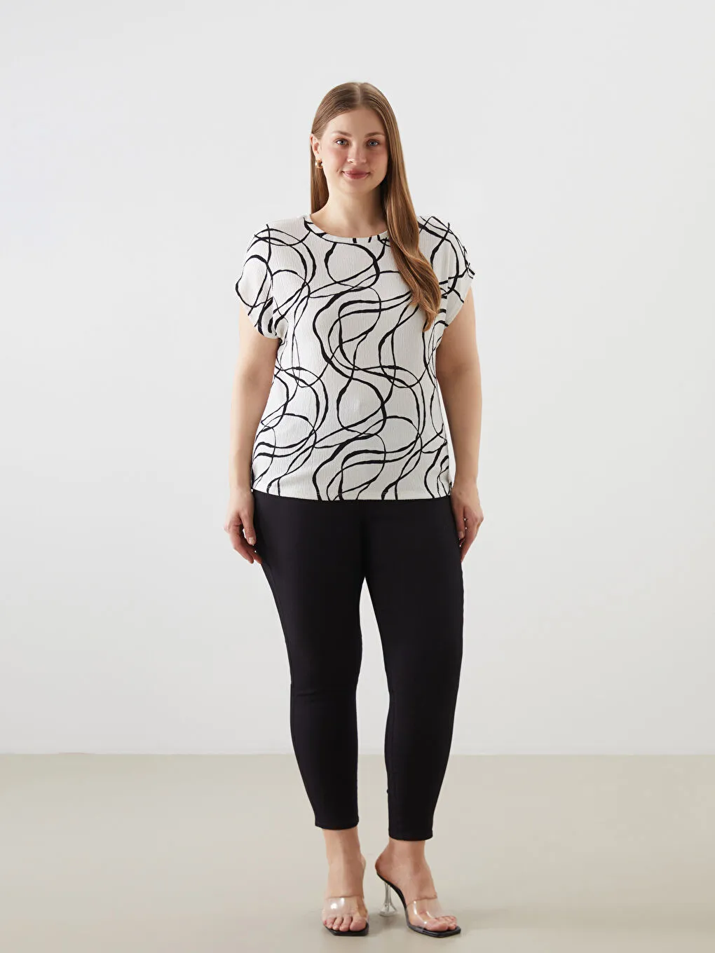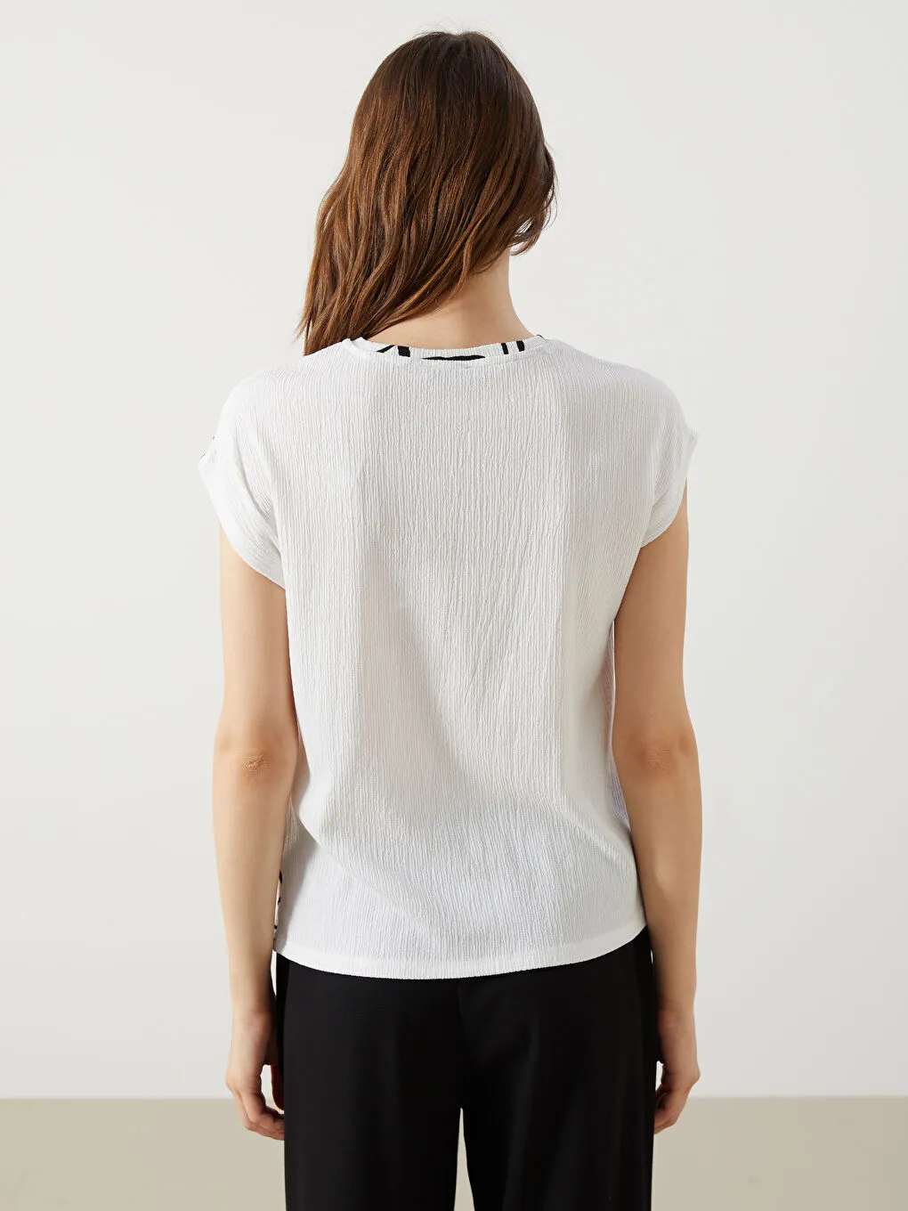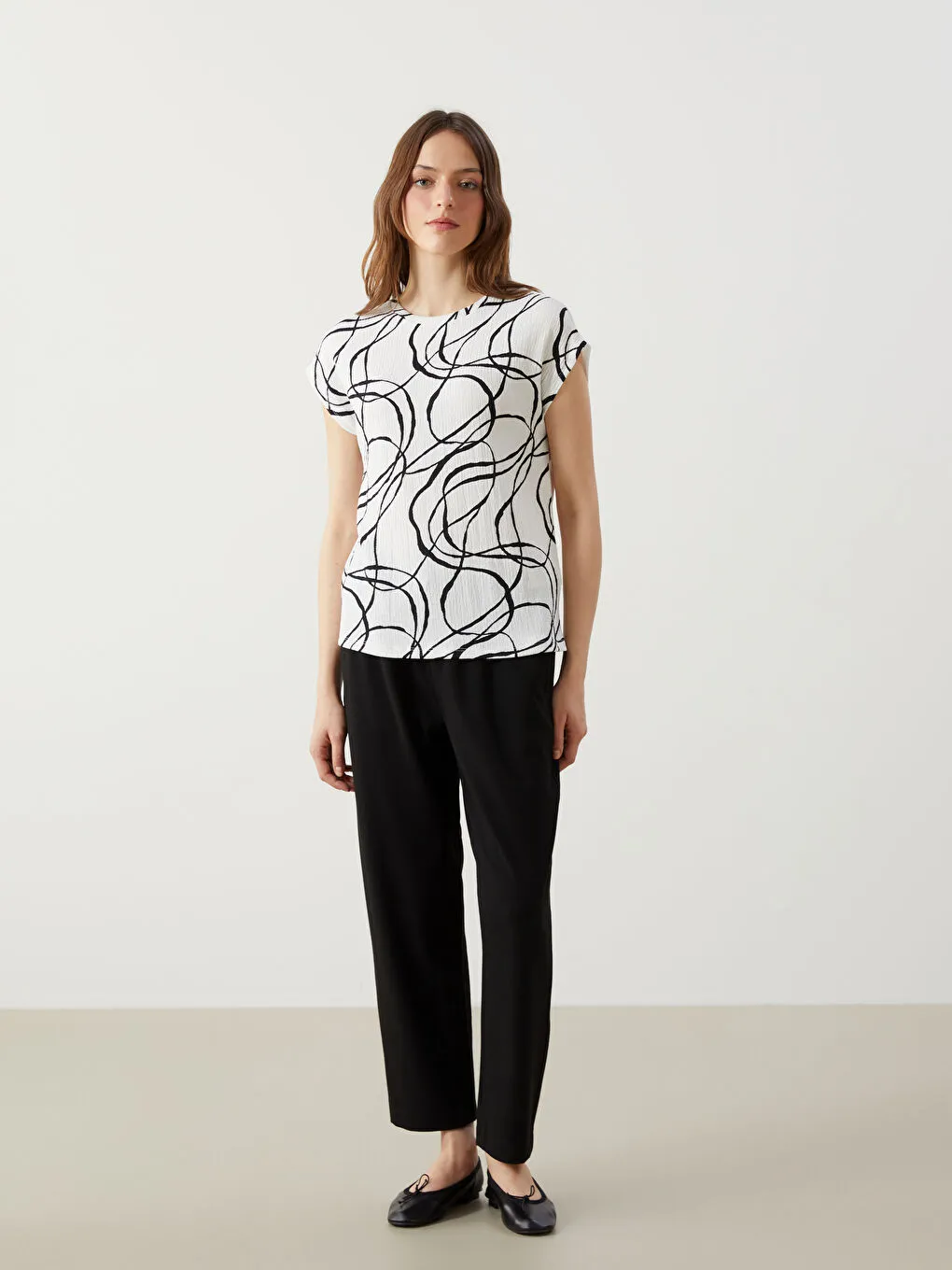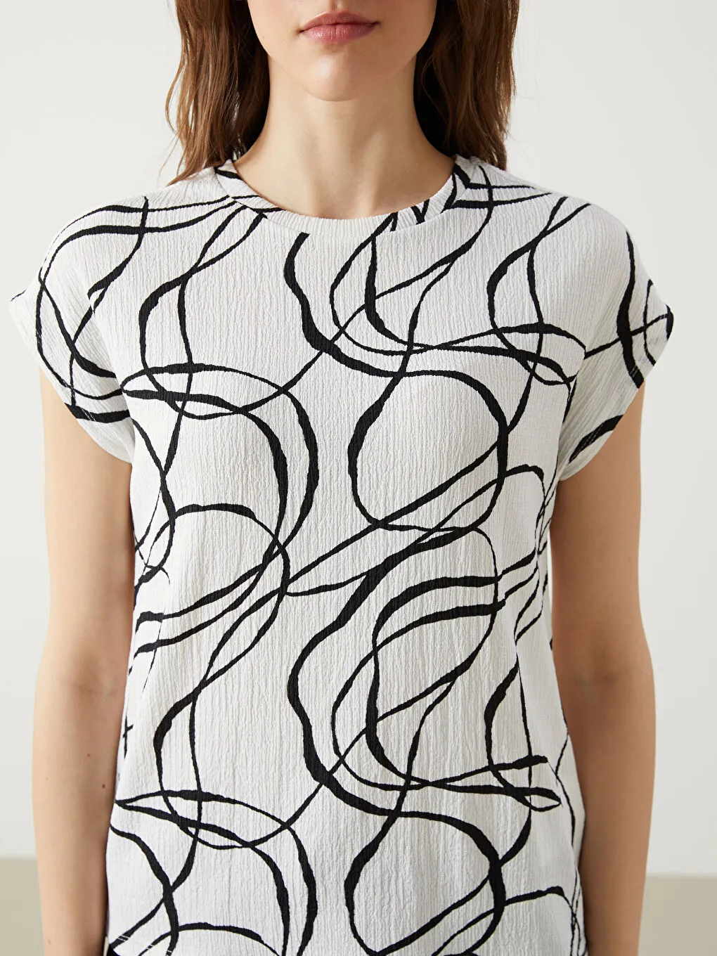 LCWAIKIKI Classic Ekru Bisiklet Yaka Desenli Kadın Tişört