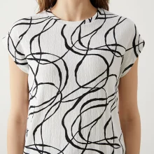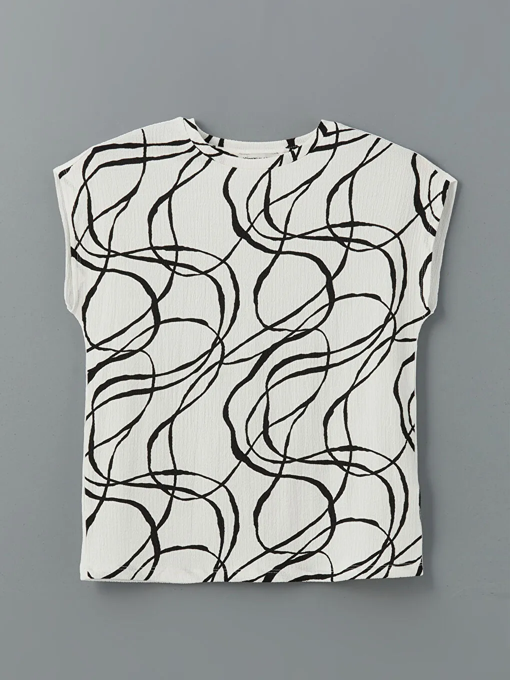 تی‌شرت زنانه طرح‌ دار یقه گرد کلاسیک ال‌سی وایکیکی رنگ کرم (اِکرو) | LCWAIKIKI Classic Ekru Bisiklet Yaka Desenli Kadın Tişört