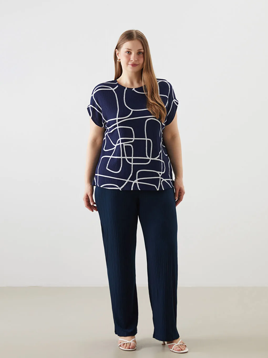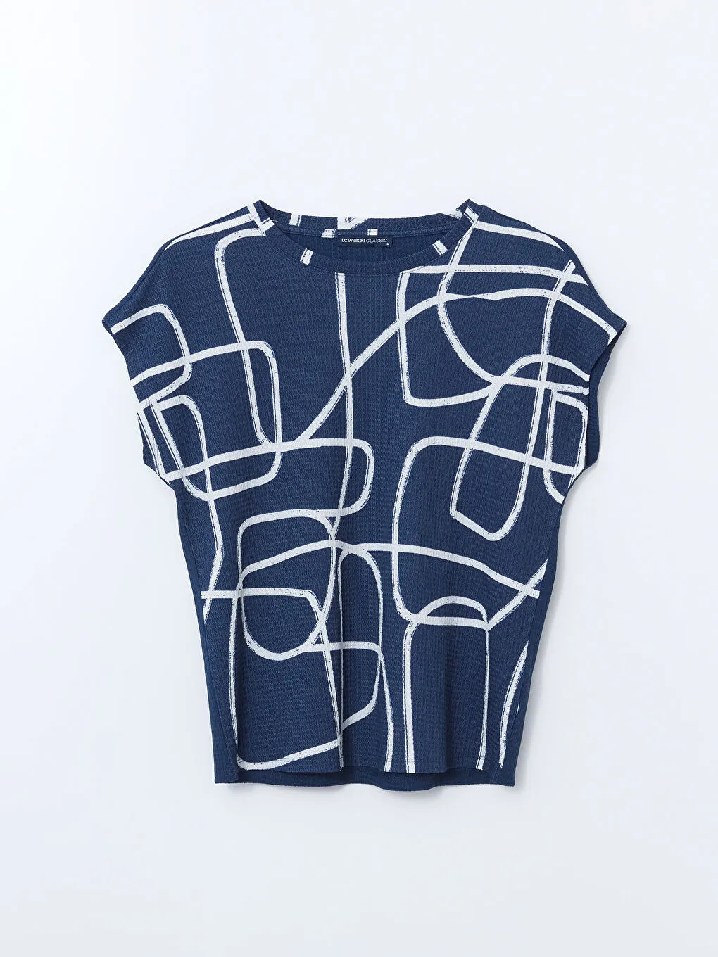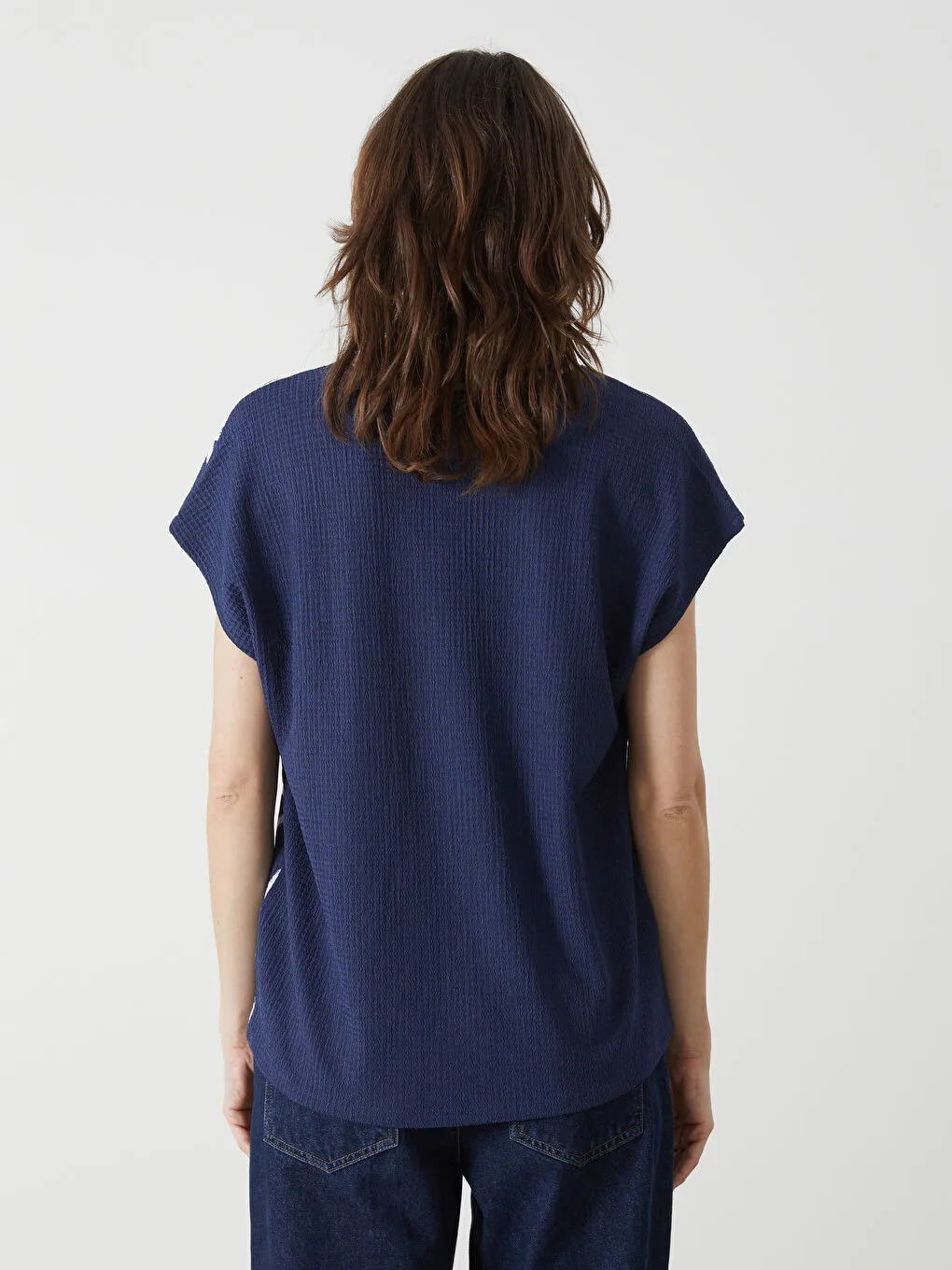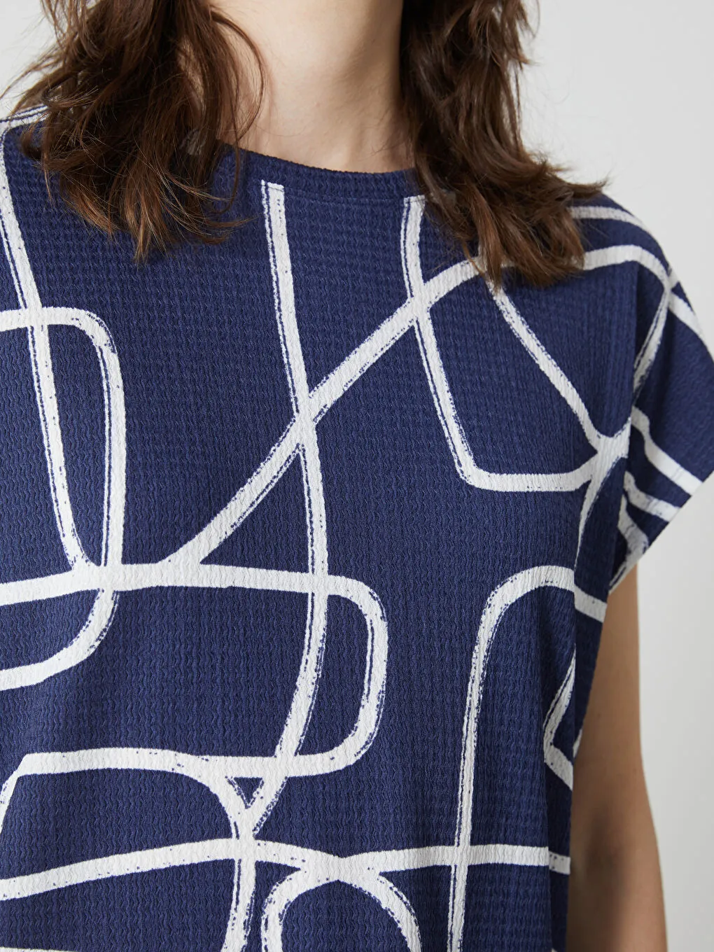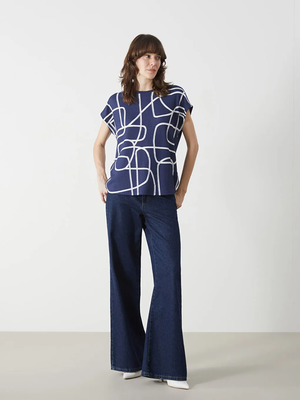 تیشرت زنانه طرحدار یقه گرد کلاسیک السی وایکیکی رنگ سرمهای | LCWAIKIKI Classic Lacivert Bisiklet Yaka Desenli Kadın Tişört