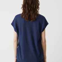یقه گرد کلاسیک و آستینهای کوتاه، این تیشرت را به انتخابی ایدهآل برای استایلهای مینیمال و شیک تبدیل کرده است. رنگ سرمهای عمیق آن با انواع شلوار و دامن هماهنگ میشود و جلوهای مرتب و دلنشین به ظاهر شما میبخشد.